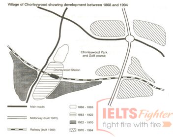 Please rely on the peculiarities of maps to comment on it. All maps show the change of a place over the years, and this change usually revolves around the addition and loss of buildings (buildings, roads, …). The map above is a difficult problem of a difficult problem. However, you can see the change of this map taking place in two aspects: the appearance of roads and the appearance of new buildings. If you pay close attention, new buildings only appear after roads are built. So, you can write:
